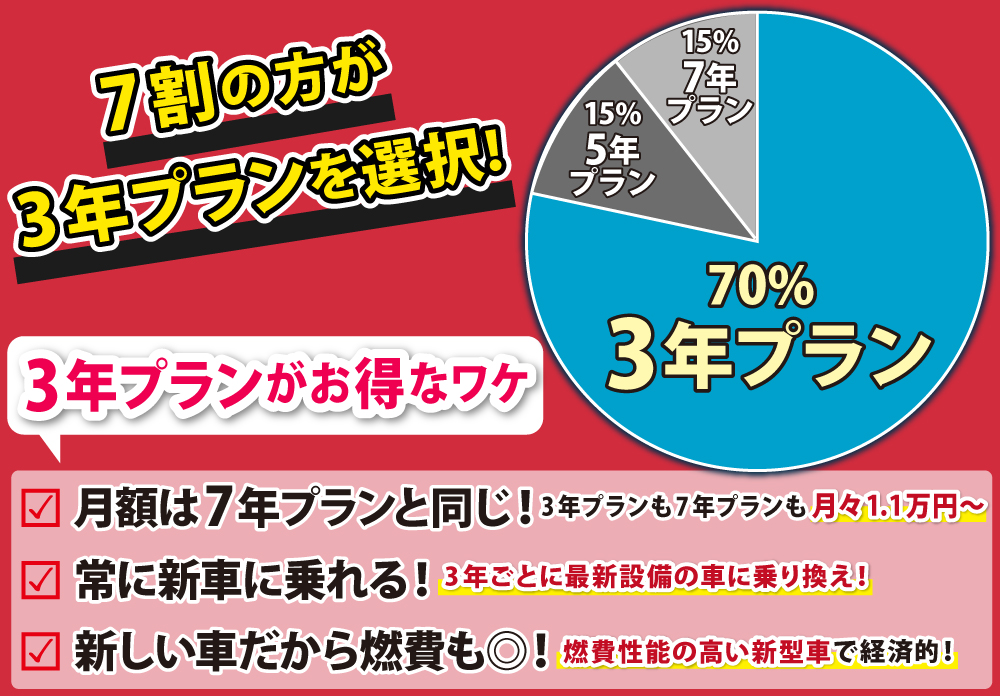 ※月々の金額は少し追加となりますが、車種やカラーを限定せずに、3年や5年でのカーリースも承っております。ご要望のお客様はスタッフまでご相談下さい。