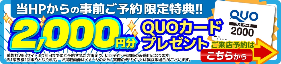 ※特典を利用されたい方は、用意が必要な為、必ず電話または予約フォームから事前予約をお願い致します。