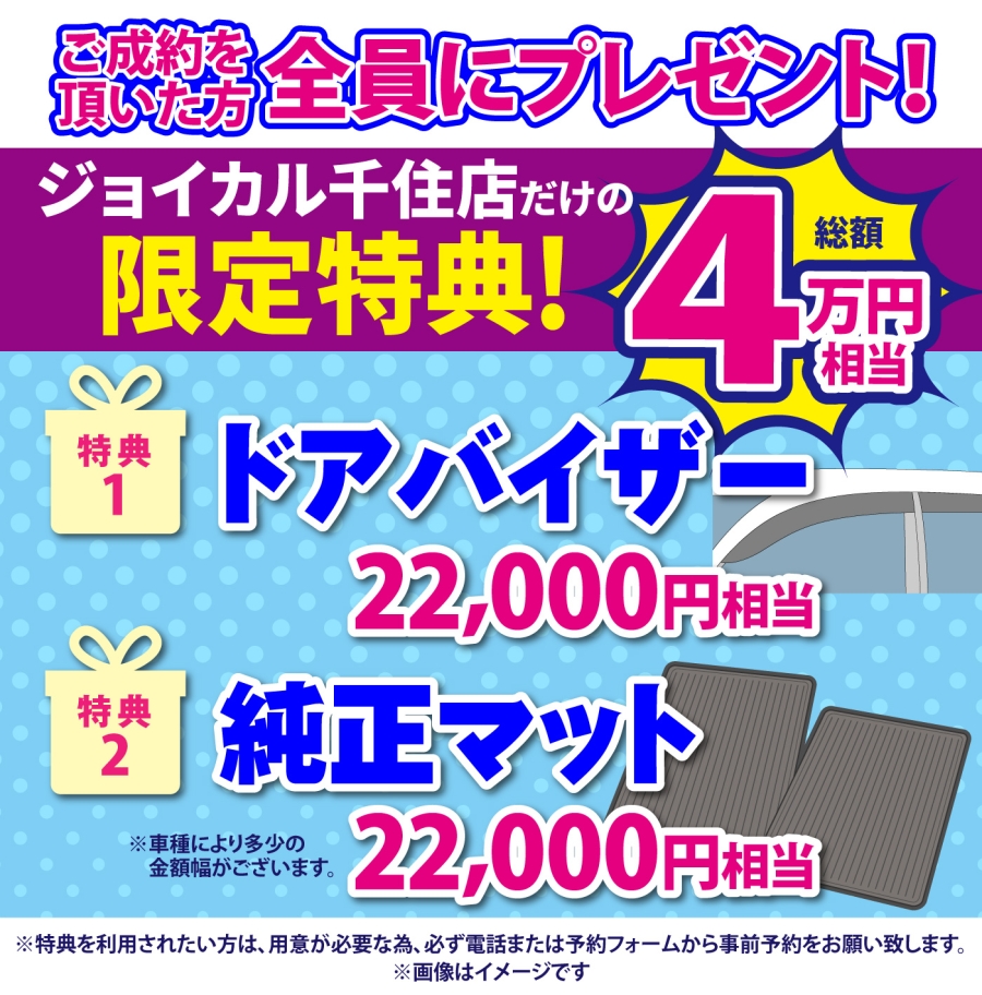 ジョイカル千住店で【7MAX(セブンマックス)】カーリースをご契約頂いたお客様限定で、ドアバイザー&純正マット、総額4.4万円相当の特典をプレゼント!!